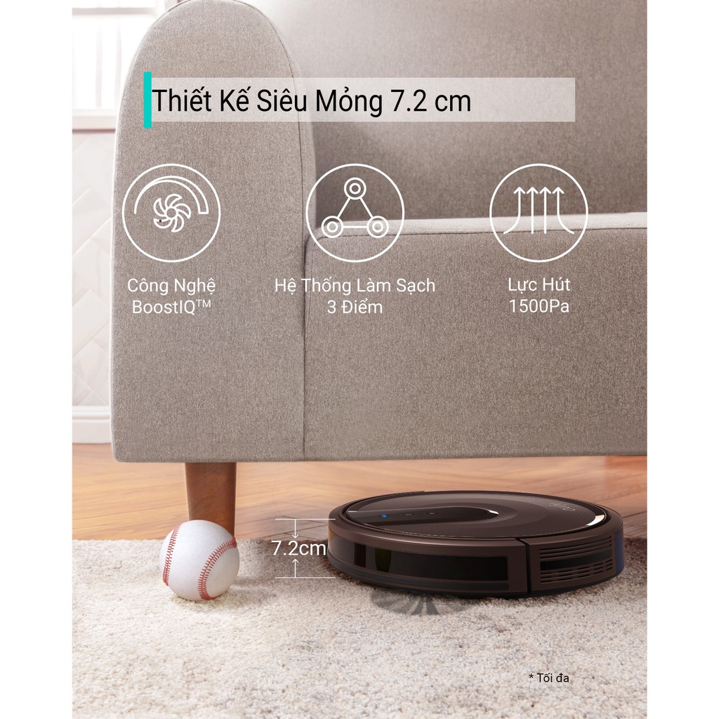 ✅ Robot hút bụi Eufy Robovac 15T - T2115 Nâu thiết kế sang trọng và kiểu dáng nhỏ gọn tiện lợiThân máy mỏng chỉ 7.25 cm cho phép làm sạch ở những khu vực khó vệ sinh như gầm thấp của tủ, kệ, bàn hay ghế sofa,...