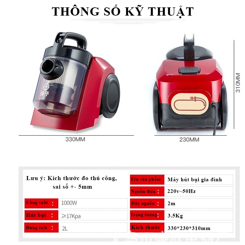 * Máy hút bụi gia đình là một loại hút bụi công suất khỏe, 1000W, điện áp 220v, lực hút cực mạnh với mức giá rất rẻ so với hiệu quả mà nó mang lại. Phụ kiện của máy hút bụi đa dạng, có thể hút mọi góc trong căn nhà của bạn.