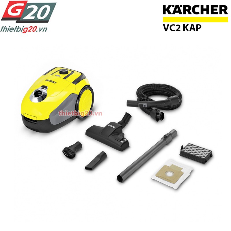 Máy hút bụi gia đình Karcher VC2 KAPMáy hút bụi VC2 là thiết bị lý tưởng cho các hộ gia đình với giá thành thân thiện. Hệ thống túi lọc bụi được thiết kế thân thiện với người dùng: túi sau khi đầy bụi có thể dễ dàng được tháo bỏ mà không cần phải tiếp xúc với bụi bẩn. Karcher VC2 KAP giúp hút bụi bẩn, giúp căn nhà sạch sẽ, bảo vệ sức khỏe và đặc biệt hữu ích với những người dị ứng với bụi. Công suất hút của máy cực khỏe với nhiều đầu hút thích hợp với mọi bề mặt.