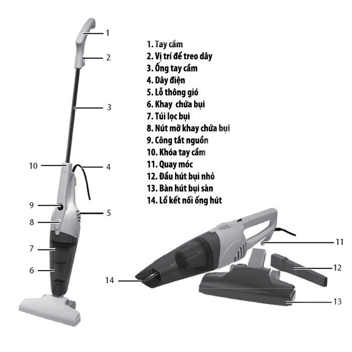 Máy Hút Bụi Gia Đình Tặng Kèm 9 Đầu Hút Đa Năng - Máy hút bụi cầm tay cao cấp, dễ sử dụng, hút mọi loại bụi- Máy hút bụi mini giúp hút mạnh, sạch mọi bụi đất, tóc và rác nhỏ, đồng thời thiết kế dáng đứng hạn chế đau lưng tới 90% so với máy hút bụi truyền thống. Máy có tới 9 đầu hút khác nhau giúp hút sạch bụi trên sàn nhà, quần áo, rèm, các vật dụng nhỏ như bàn phím, góc tủ, cầu thang. Đồng thời máy được trang bị lưới lọc bụi giúp tăng độ bền của máy và nâng cao khả năng hút vi khuẩn có hại.
