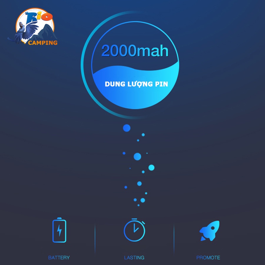 Dung lượng pin: 2000 mAh, có kèm cục sạc có thể sạc nguồn điện từ 100-240V, thời gian sạc 3-4 tiếng, thời gian sử dụng lên đến 2h.
