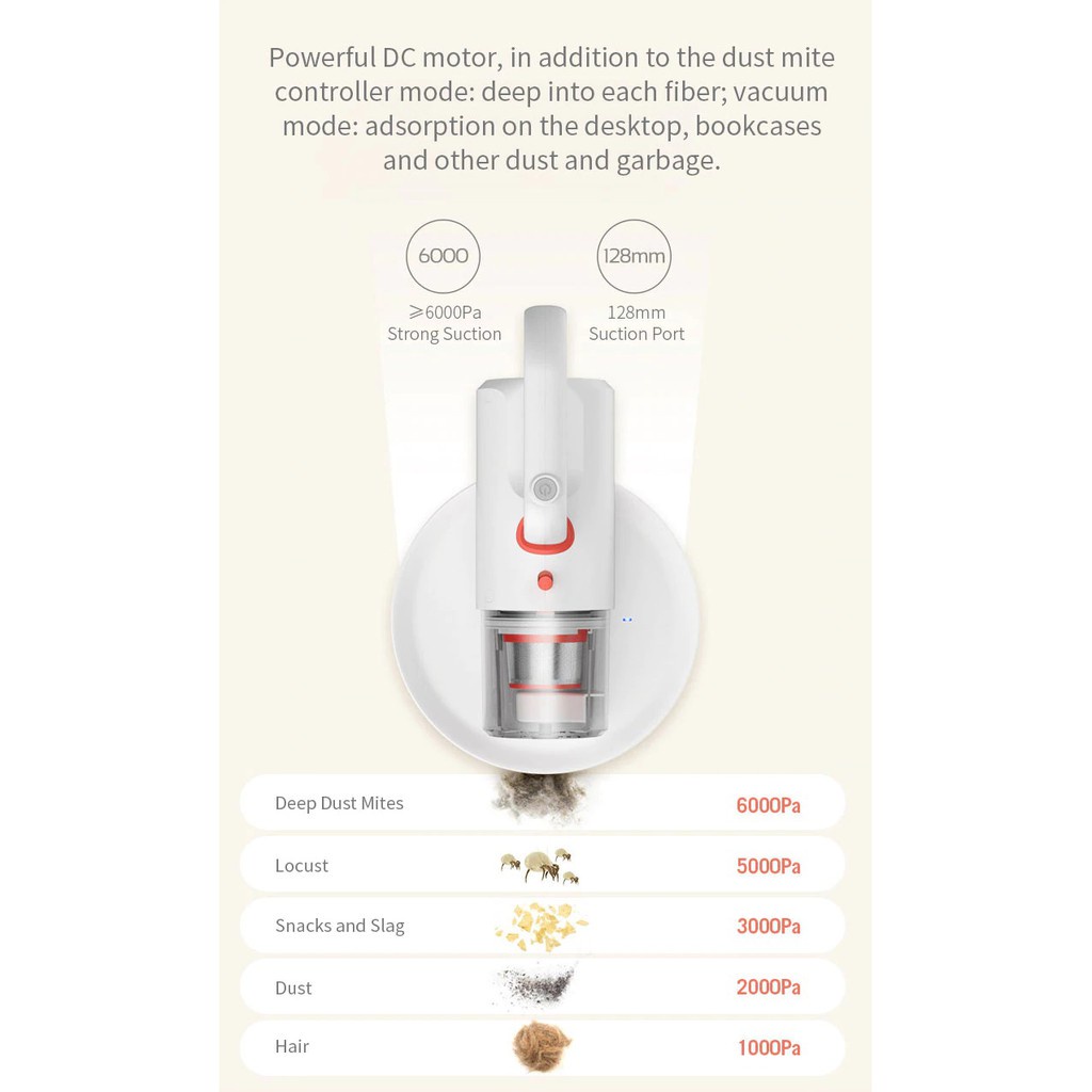 - Hút bụi khử khuẩn giường, nệm/thảm/sofa với tia UV diệt khuẩn, hút sâu và mạnh với lực hút 12kPa. Bộ rung 8000 lần/phút liên tục tác động dễ dàng hút mọi bụi mịn ẩn sâu bên dưới các lớp vải dày (Ga giường, nệm, thảm, gối...)