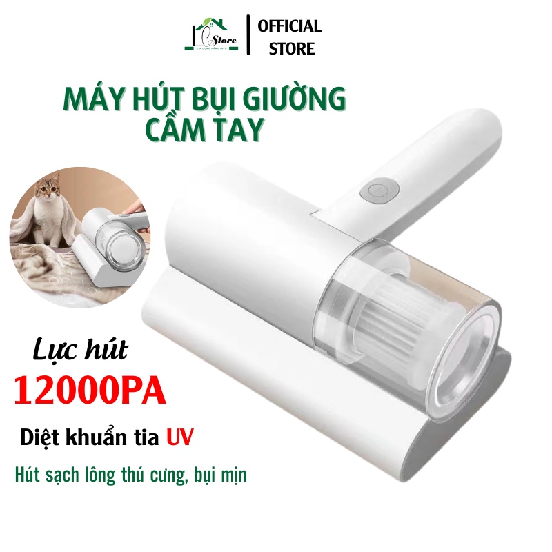 Máy hút bụi giường nệm cầm tay, máy hút bụi không dây diệt khuẩn tia UV lực hút lên đến 12000PA bảo hành 1 đổi 1