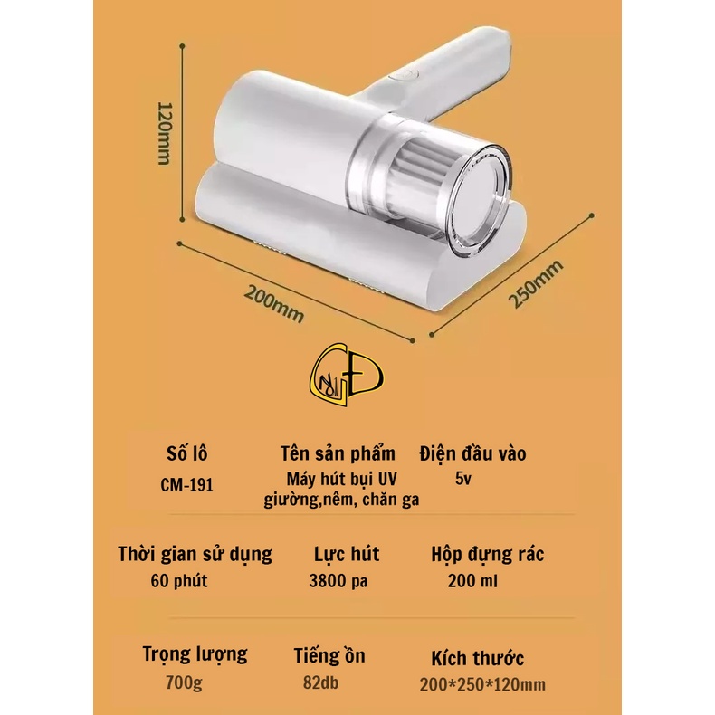 - Máy hút bụi giường nệm cầm tay, máy hút bụi không dây diệt khuẩn tia UV lực hút lên đến 12000PA bảo hành 1 đổi 1, THÔNG SỐ KỸ THUẬT của máy hút bụi giường cầm tay:● Dung tích hộp bụi: 0.2L