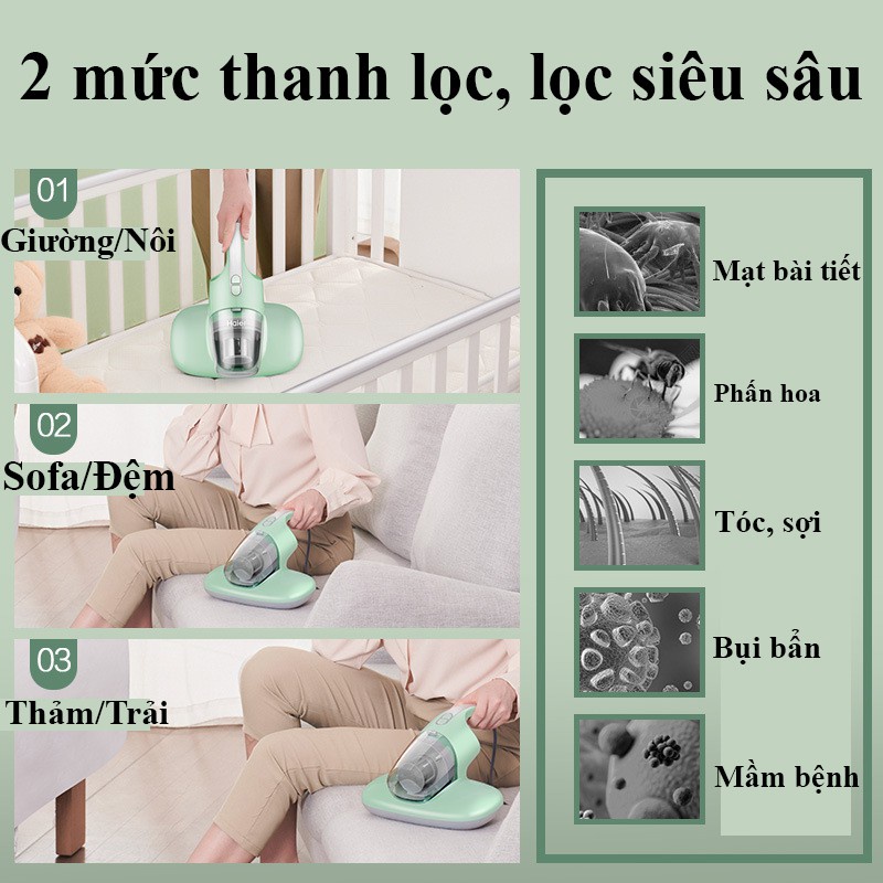 Đặc biệt, các sản phẩm hút bụi giường nệm còn được trang bị hệ thống lọc Hepa nâng cao khả năng lọc bụi nhỏ rất tốt. Máy hút bụi giường nệm còn có ưu điểm là độ ồn thấp, không gây ảnh hưởng đến cuộc sống sinh hoạt xung quanh. Giá cả của máy hút bụi giường nệm cũng phải chăng, đa dạng chi phí để phù hợp với điều kiện kinh tế của nhiều người tiêu dùng.