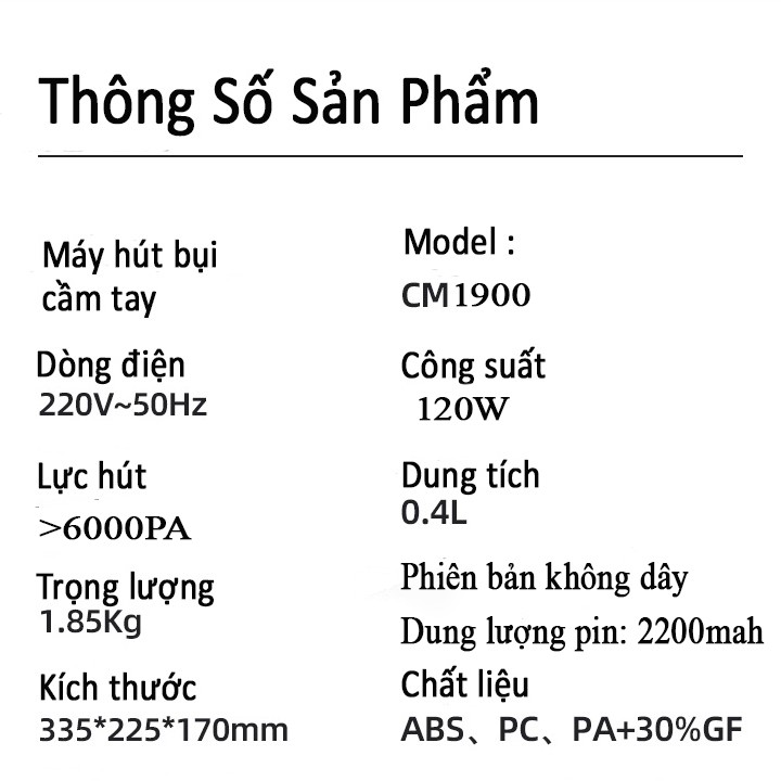 Thiết Bị Điện Gia Dụng > Thiết bị điện gia dụng nhỏ > Máy hút bụi & Thiết bị làm sạch sàn || Máy Hút Bụi Giường Nệm Không Dây CM1900Còn hàng