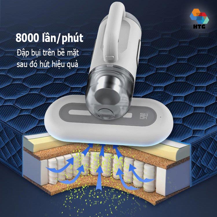 Máy hút bụi giường nệm Sawadaki KC301 diệt khuẩn UV-C, áp lực 12000 Pa mạnh mẽ, tần số đập 8000 lần/phút, công suất 400W