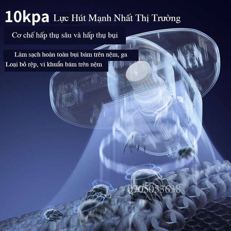 Máy hút bụi giường, nệm, sofa Không dây Lực Hút 10000PA diệt khuẩn bằng tia UV, làm khô 50 độ C Cầm tay tiện lợi.