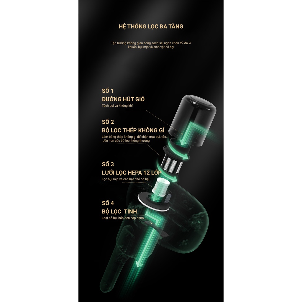 5. Máy sử dụng màng lọc Inox kết hợp với tấm lọc bụi mịn HEPA 12 lớp giúp lọc hoàn toàn bụi, vi khuẩn mang đến không gian sạch cho gia đình bạn.