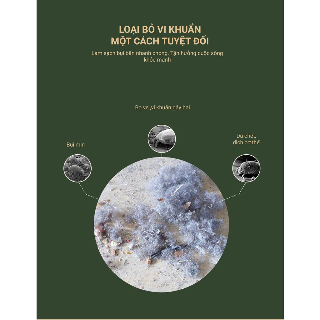 1. Tiêu diệt 99,9% vi khuẩn trong thảm, chăn, ga, gối, đệm với chiếu xạ UV rộng và cao ở bước sóng 253.7mm.