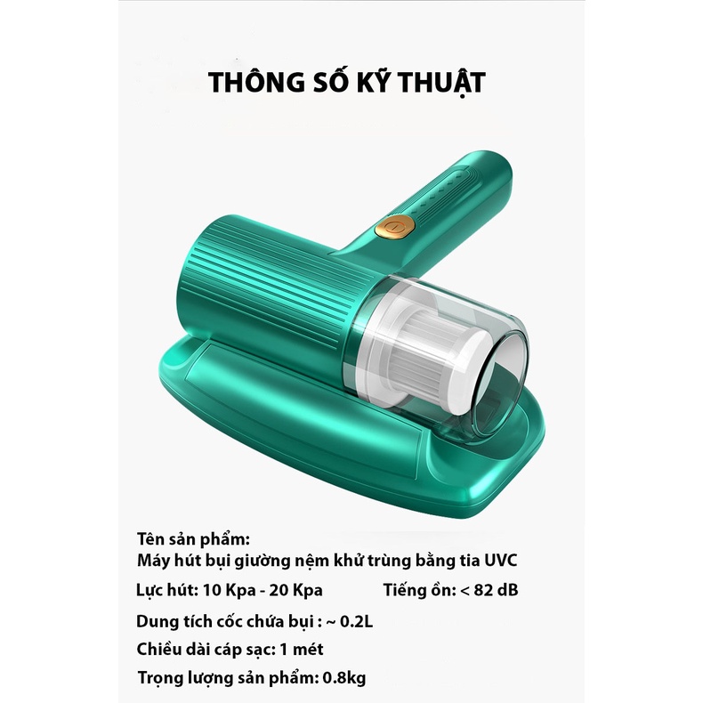 Giới thiệu Máy hút bụi giường nệm sofa thông minh - diệt khuẩn 99,9 % bằng UVC không dây cầm tay.-Sạc pin tiện lợi sử dụng dễ dàng
