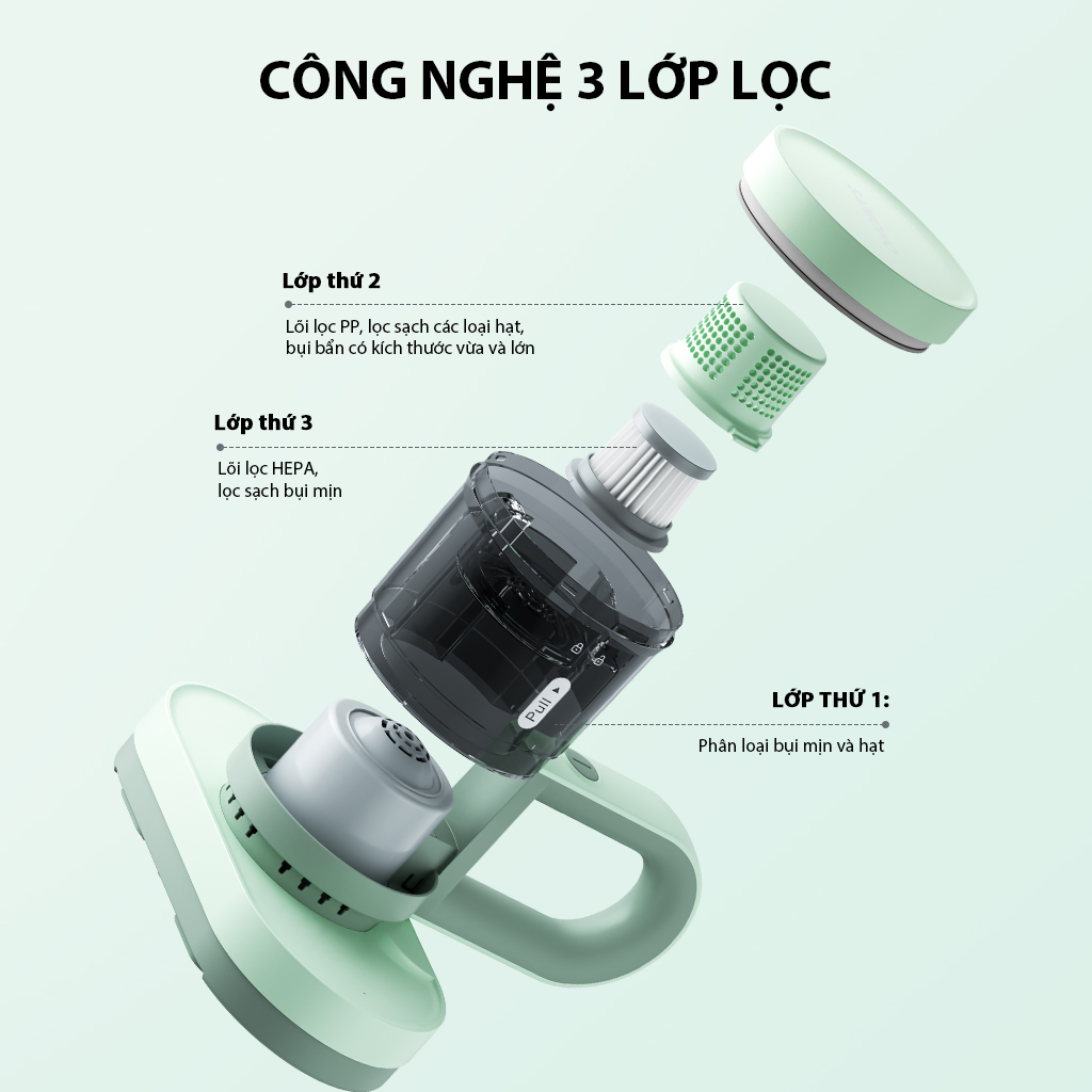 Máy Hút Bụi Giường SAMONO Tia UV diệt khuẩn Lực hút 14K Pa Tự động sấy khử ẩm Hộp chứa 300ml SW-MPG350 HÀNG CHÍNH HÃNG