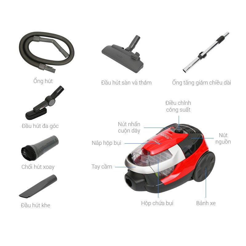 Máy hút bụiđa dạng đầu hút đáp ứng mọi nhu cầu hút bụi