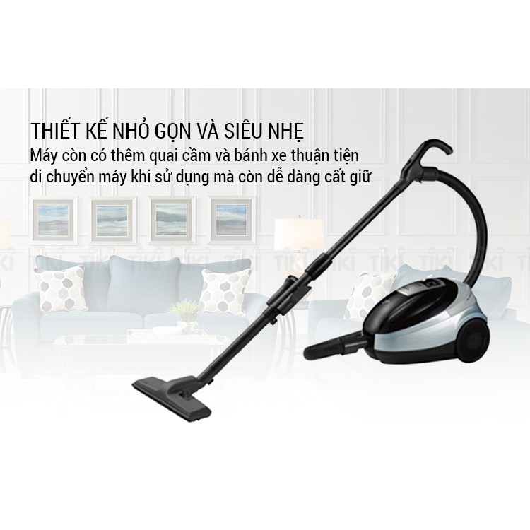 Ngoài trọng lượng nhẹ và thiết kế nhỏ gọn, máy còn có thêm quai cầm và bánh xe thuận tiện di chuyển máy khi sử dụng mà còn dễ dàng cất giữ.