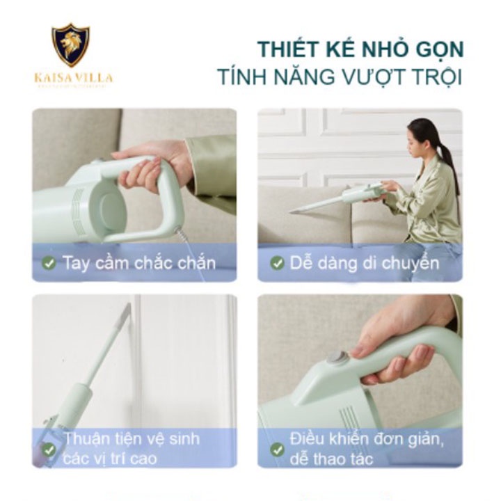Giới thiệu Máy Hút bụi Kaisa Villa Xanh-hồng, hút giường Siêu mạnh Thích hợp để làm sạch trên bề mặt gỗ cứng, thảm, sàn nhà