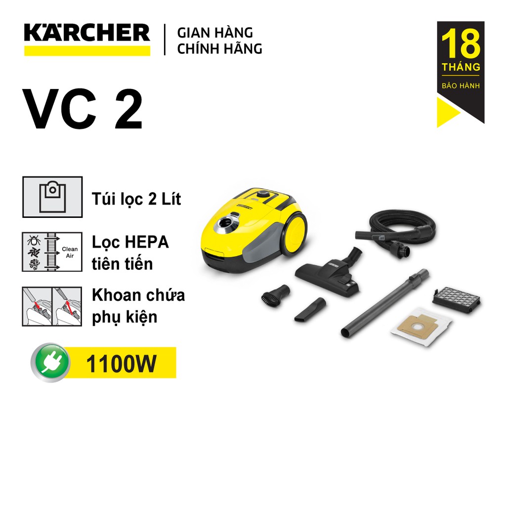 Thiết Bị Điện Gia Dụng > Thiết bị điện gia dụng nhỏ > Máy hút bụi & Thiết bị làm sạch sàn || Máy hút bụi khô dùng túi lọc Karcher VC2 công suất 1100W - bộ lọc Hepa - dung tích túi bụi đến 2.8 lítCòn hàng