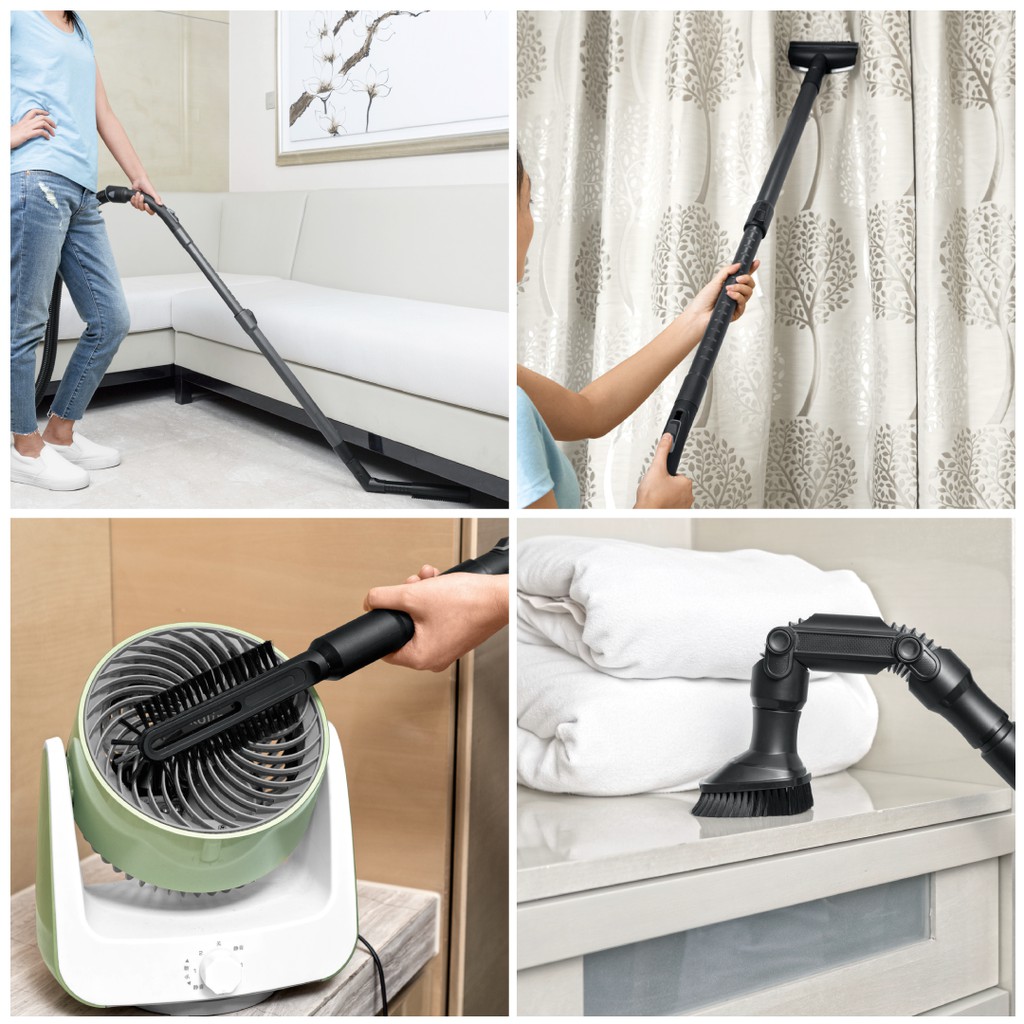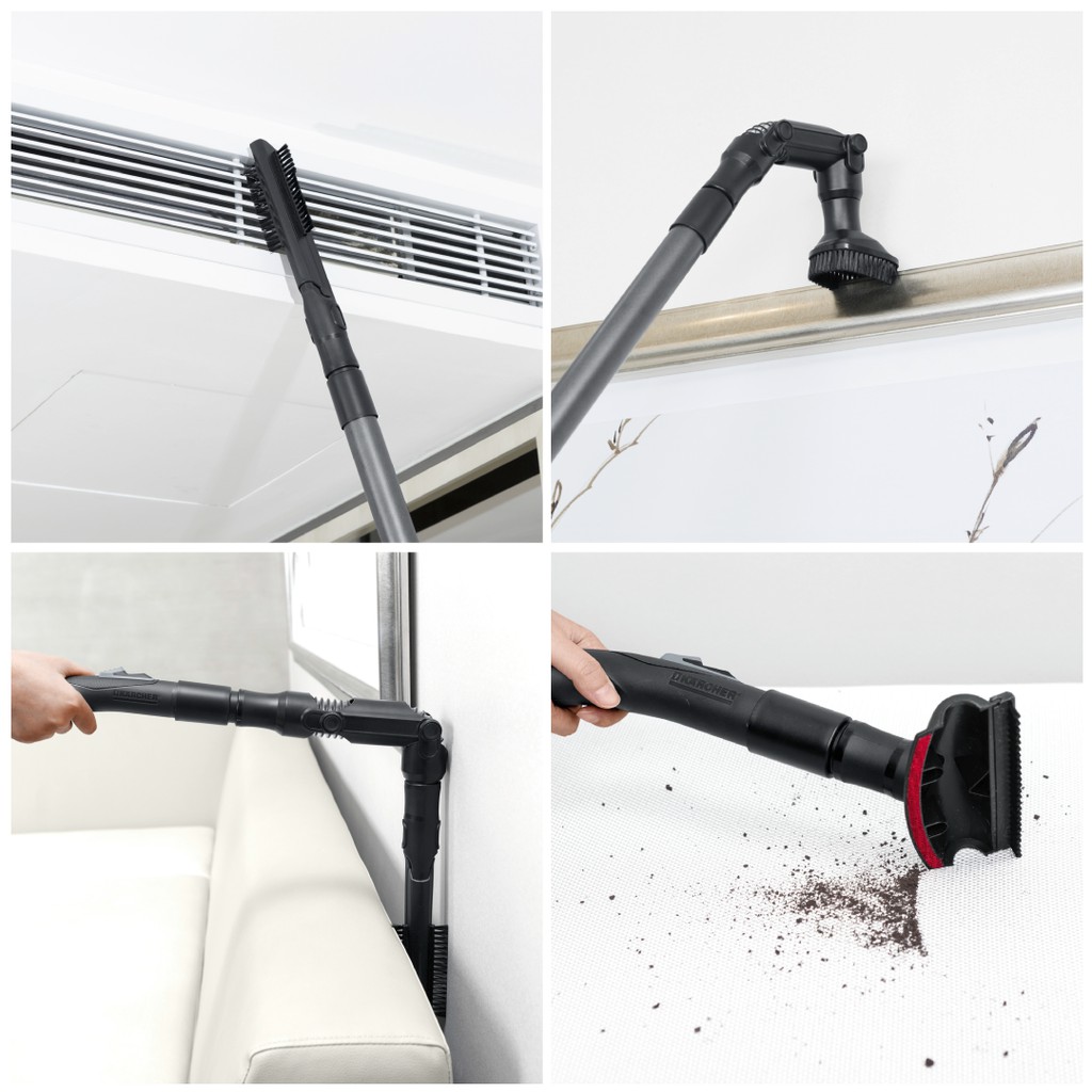 ống hút có thể nối dài, giúp máy có thể hút và làm sạch ở những nơi khó chạm tới như trần nhà, màn cửa,