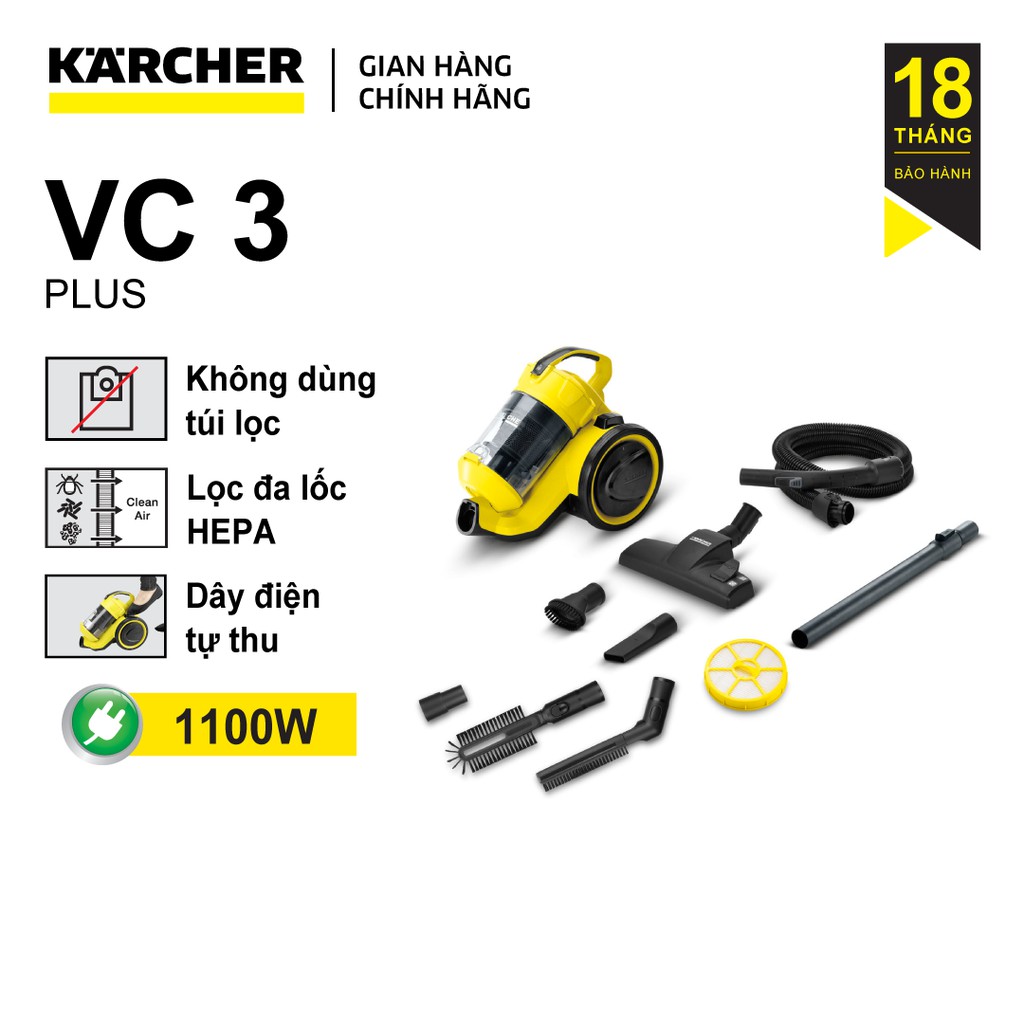 Thiết Bị Điện Gia Dụng > Thiết bị điện gia dụng nhỏ > Máy hút bụi & Thiết bị làm sạch sàn || Máy hút bụi khô không dùng túi lọc bụi Karcher VC 3 Plus công suất 1100w màu vàng - bảo hành 18 thángCòn hàng