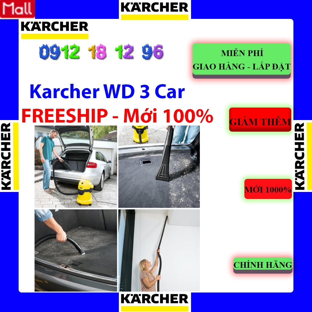 Giới thiệu [Mã ELHAMS5 giảm 6% đơn 300K] Máy hút bụi khô & ướt Karcher WD 3 Car - Romani - Karcher WD3 Car