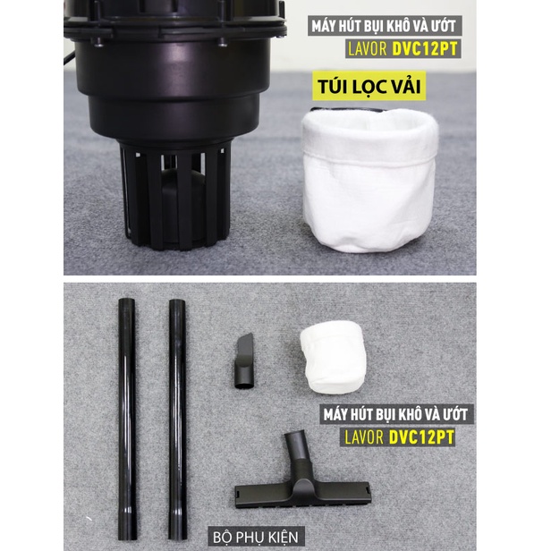 - Lavor DVC 12 PT là một máy hút bụi đa năng với điện năng tiêu thụ chỉ 1.000 watt/Max 1200W - Mặc dù lượng tiêu thụ thấp, thiết bị này mạnh mẽ như một máy hút bụi 1200-watt. Thiết kế thân nhựa chắc chắn, chống va đập với dung tích chứa 12 lít, cùng với một bộ hộp lọc dùng để hút bụi khô và ướt cùng lúc mà không cần thay đổi bộ lọc. Đi kèm với phụ kiện bàn hút sàn hiện đại cho phép bỏ các loại bụi bẩn khác nhau một cách hiệu quả.