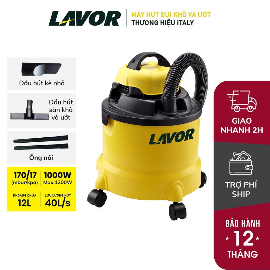 Máy hút bụi khô và ướt Lavor DVC 12PT, công suất 1200W, khoang chứa 12 Lít - bảo hành 1 năm