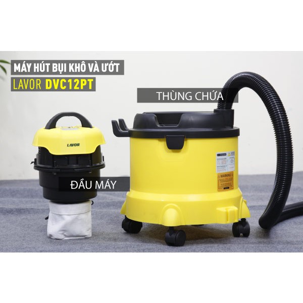 - Lavor DVC 12 PT là một máy hút bụi đa năng với điện năng tiêu thụ chỉ 1.000 watt/Max 1200W - Mặc dù lượng tiêu thụ thấp, thiết bị này mạnh mẽ như một máy hút bụi 1200-watt. Thiết kế thân nhựa chắc chắn, chống va đập với dung tích chứa 12 lít, cùng với một bộ hộp lọc dùng để hút bụi khô và ướt cùng lúc mà không cần thay đổi bộ lọc. Đi kèm với phụ kiện bàn hút sàn hiện đại cho phép bỏ các loại bụi bẩn khác nhau một cách hiệu quả.