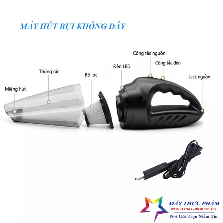 Máy Hút Bụi Không Dây 6052 Dùng Trên Ô tô và Gia Đình Sạc Pin Cáp USB