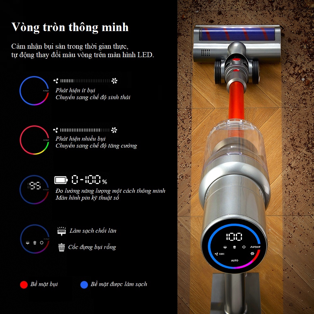 Giới thiệu Máy hút bụi không dây Airbot Hypersonics Pro 27KPa Cảm biến bụi thông minh Tốc độ tự động Điều chỉnh đèn chiếu sàn