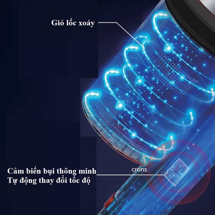 Máy hút bụi không dây tự động cảm nhận mật độ bụi và điều chỉnh công suất thông minh để cho phép cân bằng tối ưu giữa tuổi thọ pin và công suất động cơ. Điều này cho phép người dùng làm sạch mà không gặp rắc rối với các chế độ hút chân không thay đổi liên tục.
