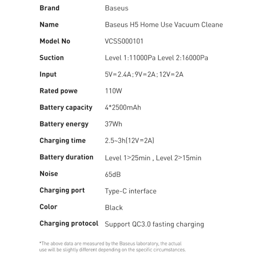 LƯU Ý: Dữ liệu trên được đo lường bởi phòng thí nghiệm Baseus, thực tế sử dụng sẽ có chút khác biệt tùy vào từng trường hợp cụ thể