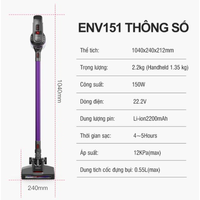 - Máy Hút Bụi Không Dây Dùng Pin Sạc Lock&Lock ENV151 được thiết kế với công nghệ làm sạch Hepa và khay chứa bụi lớn giúp bạn thuận tiện trong công việc làm sạch bầu không khí, bụi bẩn bám trên các đồ dùng trong gia đình mà với những thao tác thủ công bạn không thể mang đến cho mọi người không gian luôn trong lành. Với công suất hoạt động cao giúp công việc được xử lý nhanh để bạn có thể tiết kiệm được nhiều thời gian hơn.