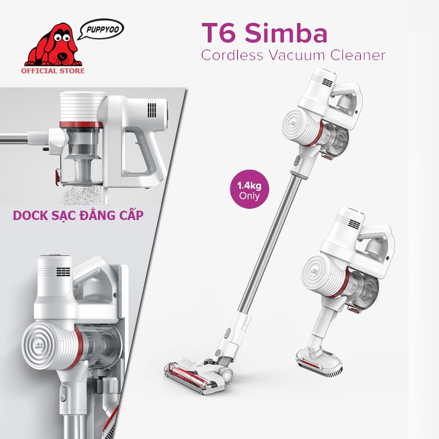 Thiết Bị Điện Gia Dụng > Thiết bị điện gia dụng nhỏ > Máy hút bụi & Thiết bị làm sạch sàn || Máy hút bụi không dây cao cấp Puppyoo T6 Simba lực hút 15kPa công nghệ NIDEC MOTOR bảo hành chính hãng 2 nămCòn hàng