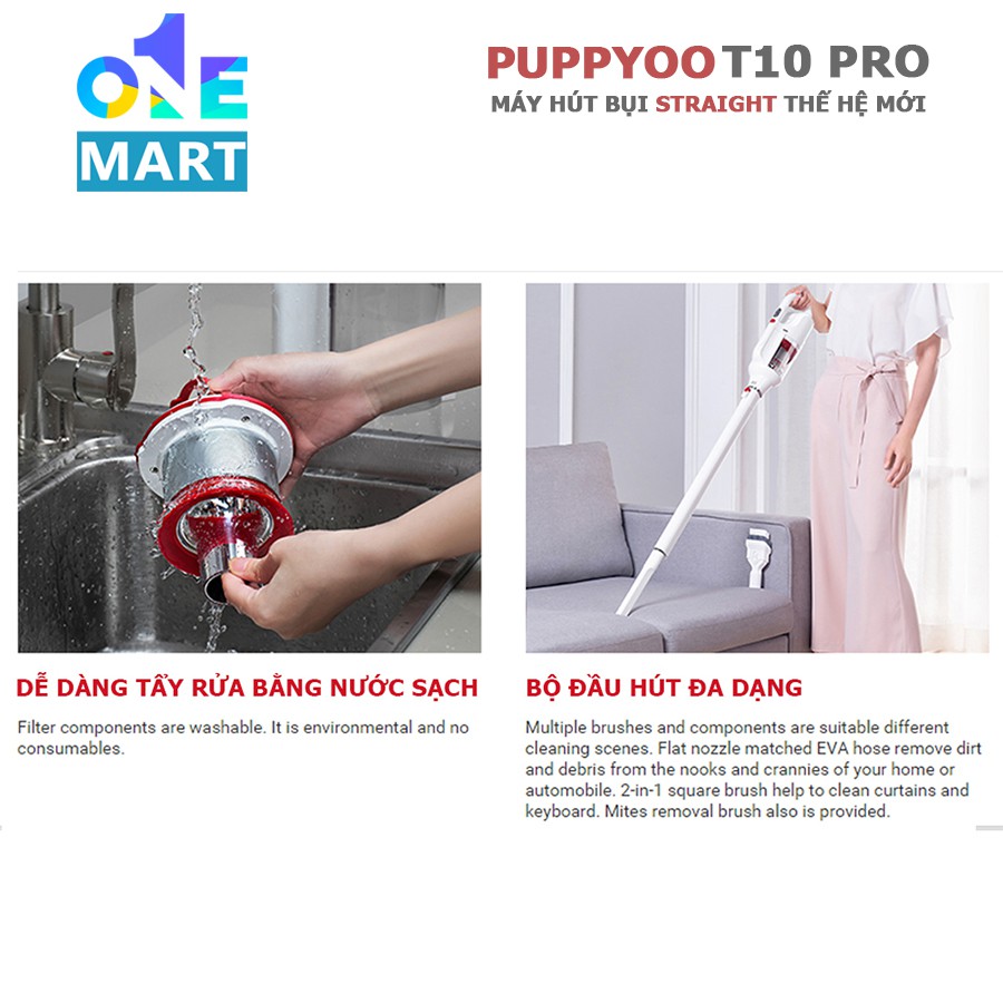 Giới thiệu Máy hút bụi không dây cao cấp Puppyoo T10 Pro thiết kế Straight động cơ NIDEC lực hút 17kPa pin 7Cell dock sạc đẳng cấp
