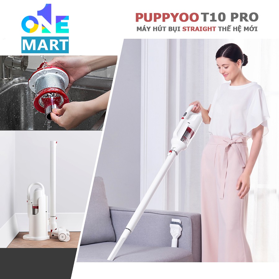 Máy hút bụi không dây cao cấp Puppyoo T10 Pro thiết kế Straight động cơ NIDEC lực hút 17kPa pin 7Cell dock sạc đẳng cấp