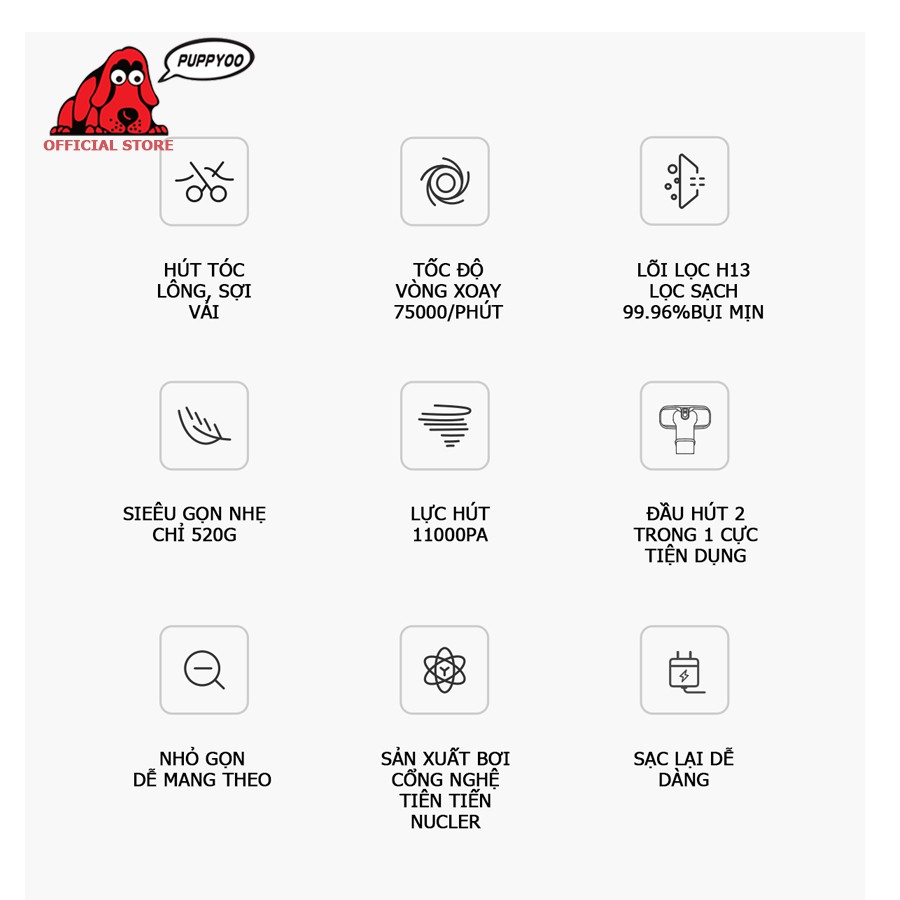Thiết Bị Điện Gia Dụng > Thiết bị điện gia dụng nhỏ > Máy hút bụi & Thiết bị làm sạch sàn || Máy hút bụi không dây cao cấp Puppyoo A10 Pro thiết kế đẳng cấp siêu nhỏ gọn chỉ 520g hàng chính hãng bảo hành 2 nămCòn hàng