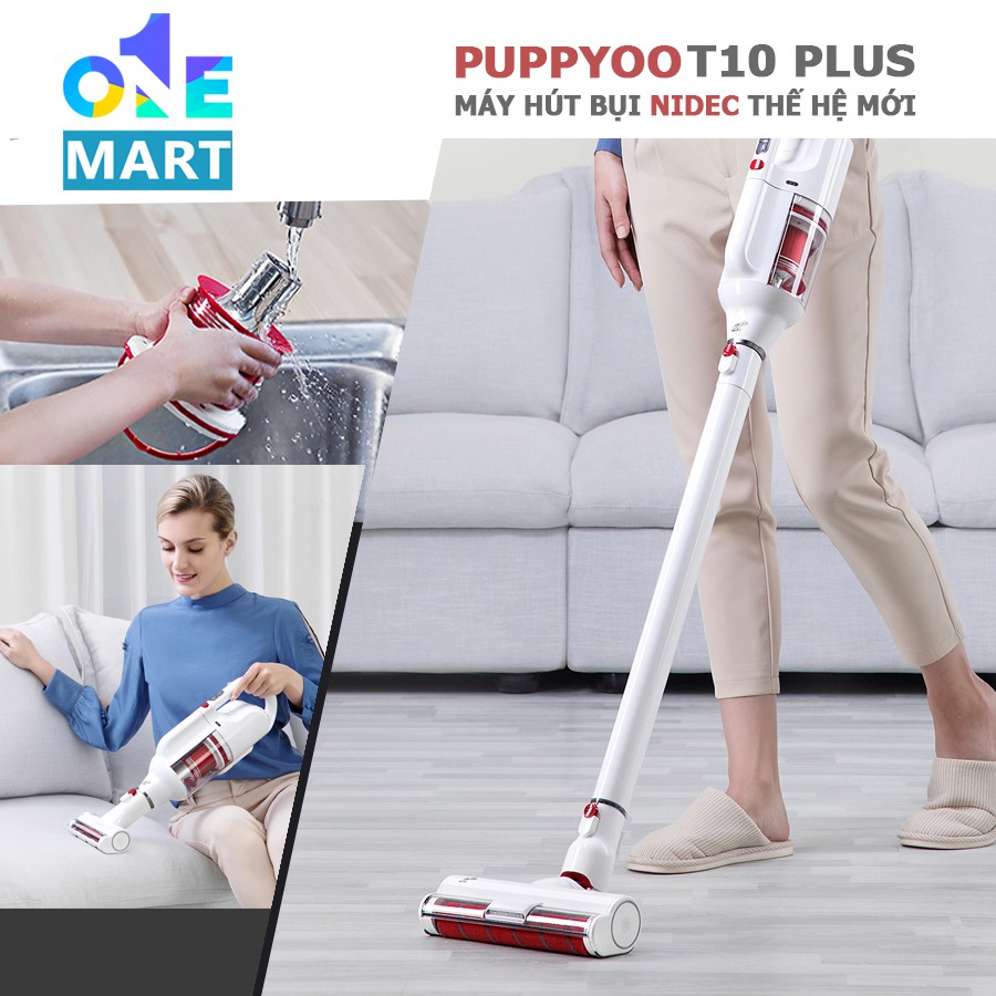 Máy hút bụi không dây cao cấp Puppyoo T10 Plus động cơ NIDEC lực hút cực đỉnh 19kPa dock sạc thời trang bảo hành 24T