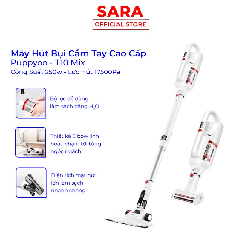 Máy Hút Bụi Không Dây Đa Năng chính hãng PUPPYOO T10 Lực hút mạnh, Bảo Hành 24 Tháng ShopsaraMáy hút bụi cầm tay không dây T10 Mix với lực hút cực mạnh giúp bạn hút sạch mọi ngóc ngách trong căn nhà một cách dễ dàng.