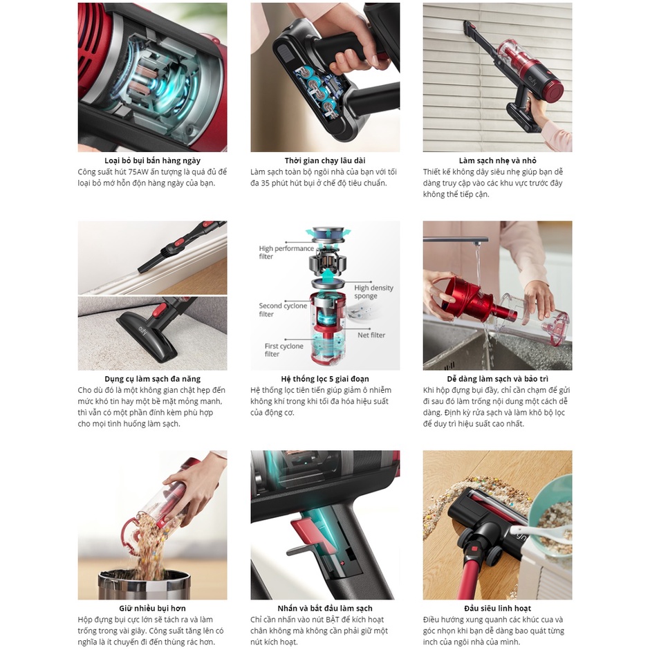 ✶Khi hộp chứa bụi đầy, chỉ cần chạm vào để gửi đi sau đó làm trống nội dung một cách dễ dàng. Định kỳ rửa sạch và làm khô bộ lọc để duy trì hiệu suất cao nhất.