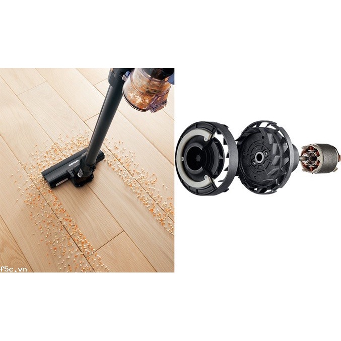 Nhưng kích thước khá lớn lại đem đến hai điểm cộng là phần thân chứa bụi hút vào rộng lớn 0.15L, kế đến công suất lớn cho lực hút mạnh ấn tượng vượt qua các sản phẩm máy hút bụi cầm tay trên thị trường.