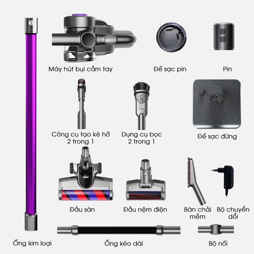 - Thiết kế cầm tay: sử dụng thiết kế tốn ít công sức nhất và ít gây căng thẳng cho cơ cẳng tay, cho phép hút bụi dễ dàng trong thời gian dài.