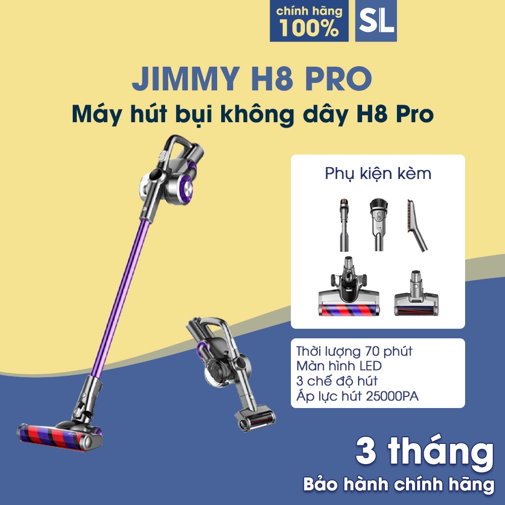 Thiết Bị Điện Gia Dụng > Thiết bị điện gia dụng nhỏ > Máy hút bụi & Thiết bị làm sạch sàn || Máy hút bụi không dây Jimmy H8 Pro Áp lực hút 25000Pa Thời gian làm việc 70 phútCòn hàng
