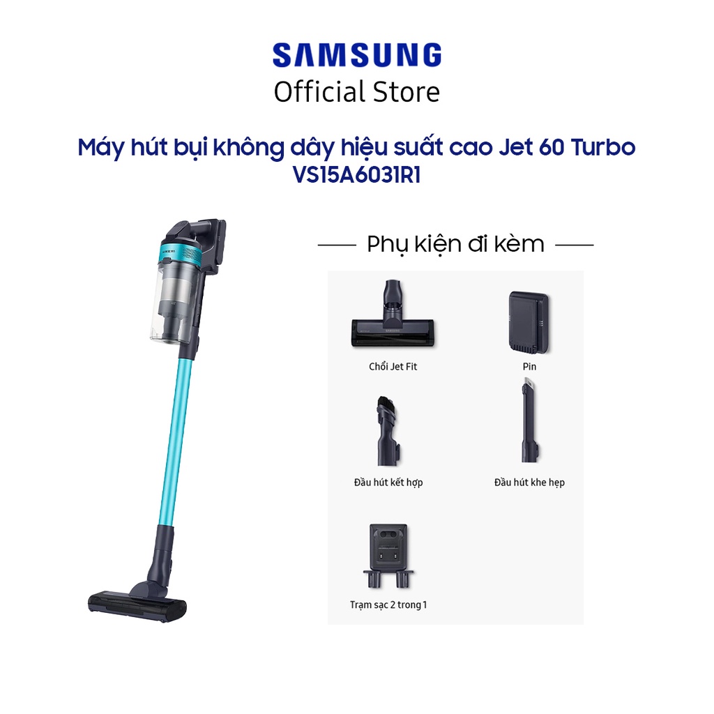 Thiết Bị Điện Gia Dụng > Thiết bị điện gia dụng nhỏ > Máy hút bụi & Thiết bị làm sạch sàn || [Mã ELSS500 giảm 10% đơn 500K] Máy hút bụi không dây Samsung Jet60 Turbo (VS15A6031R1/SV)Còn hàng