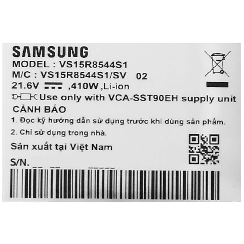 Thiết Bị Điện Gia Dụng > Thiết bị điện gia dụng nhỏ > Máy hút bụi & Thiết bị làm sạch sàn || Máy hút bụi không dây Samsung VS15R8544S1/SV công suất hút 150W có đầu hút cho xe hơi - Chính hãng BH 12 thángCòn hàng