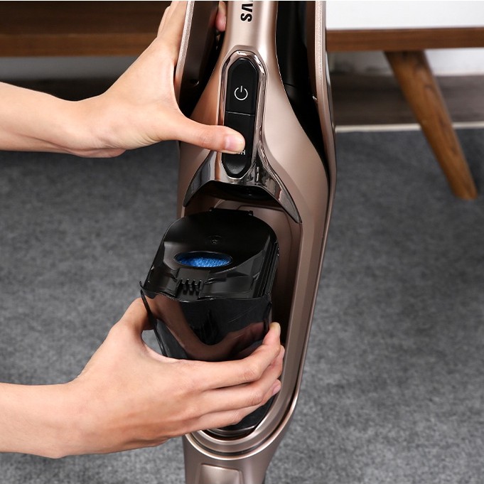 ● Máy hút bụi Samsung với thiết kế đặc biệt 3 trong 1, kiểu dáng gọn gàng, hiện đại, sang trọngBạn có thể sử dụng máy hút bụi không dây để hút sàn, hoặc hút gần như máy hút bụi cầm tay, hoặc sử dụng bộ nối dài 7m để hút bụi tại những vị trí xa tầm với, thật linh hoạt để làm sạch mọi vị trí trong ngôi nhà của bạn.
