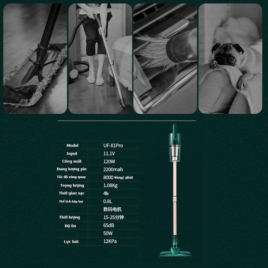 Máy hút bụi không dây Youfu UF-X1 Pro hàng chính hãng lực hút cực khỏe tặng kèm đầu hút chăn đệm chuyên dụng