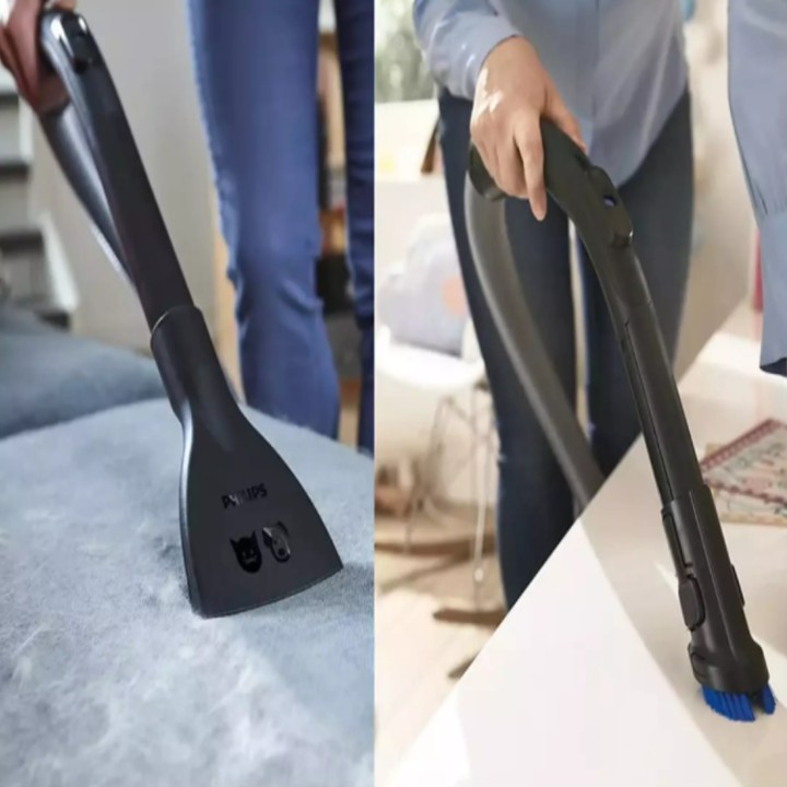 - Công cụ bàn chải quét bụi được gắn sẵn vào tay cầm nên luôn sẵn sàng để sử dụng cho đồ nội thất, mặt phẳng và vỏ bọc nệm.