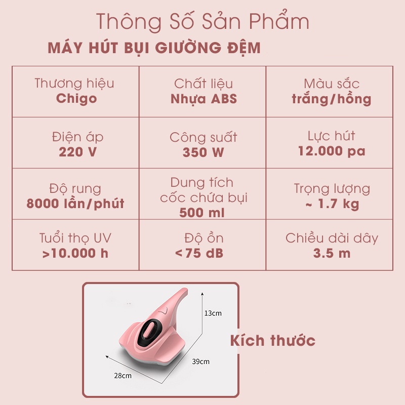 ☘️ Máy hút bụi cầm tay Chigo có công suất lớn lực hút trên 10.000 pa dễ dàng hút bụi bẩn, bụi mịn trên giường nệm giúp bạn có 1 giấc ngủ thật trong lành và yên tâm