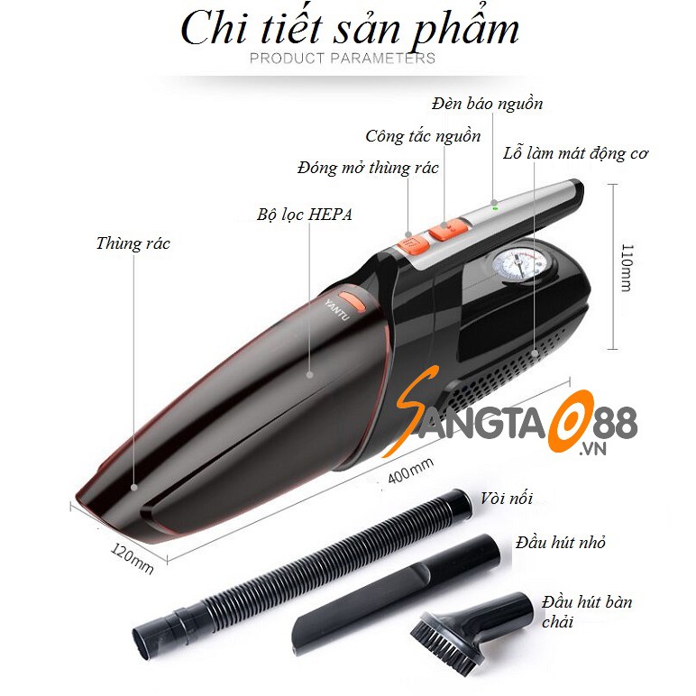 Bạn nghĩ bên trong ô tô thì không có bụi và luôn luôn sạch sẽ. Thực tế thì không phải vậy, bên trong ô tô khi lâu ngày không vệ sinh thì sẽ có rất nhiều bụi bẩn. Lúc đó bạn muốn vệ sinh sạch sẽ thì phải mang ra những gara ô tô và tốn một khoản chi phí khá cao và tốn thời gian cho việc vệ sinh này. Thì giờ đây để tiết kiệm thời gian và chi phí vào những việc đó chúng tôi có sản phẩm máy hút bụi kiêm bơm lốp đa năng trên ô tô đa năng.THÔNG SỐ KĨ THUẬT: