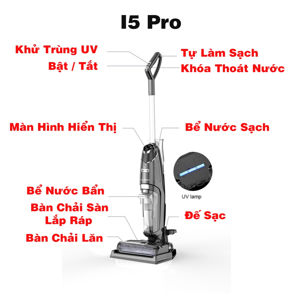 Tích hợp đèn UV Diệt khuẩn sàn nhà, tự giặt chổi