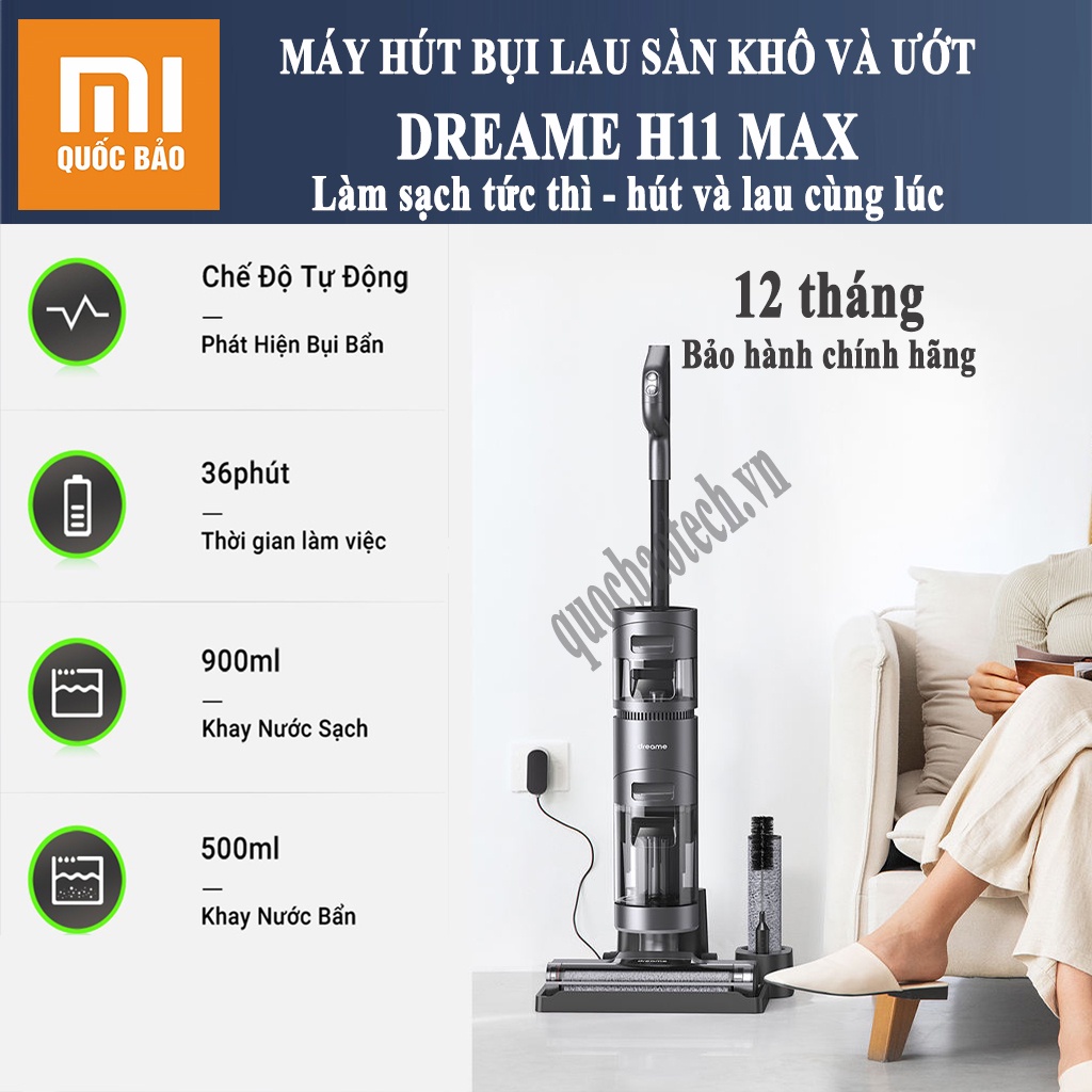 Máy hút bụi lau nhà khô và ướt Dreame H11 Max - Lau nhà, hút bụi khô và ướt, Hàng chính hãng- Bảo hành 1 năm